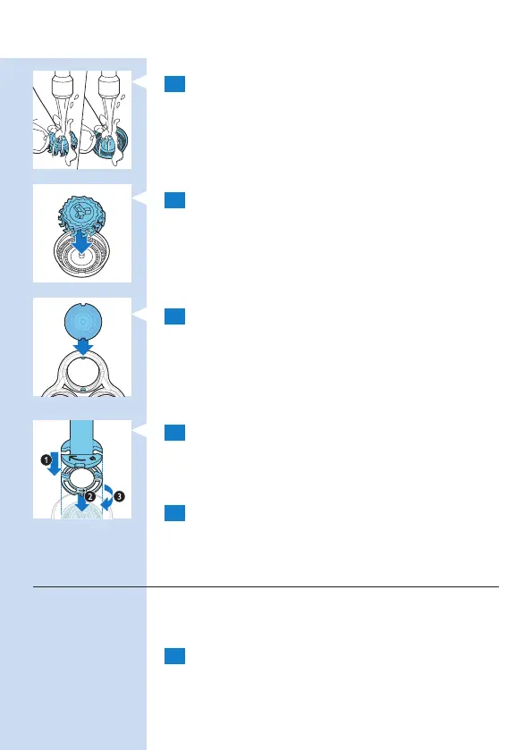 7 Aseta pidike kiinnitysrenkaaseen (1), aseta