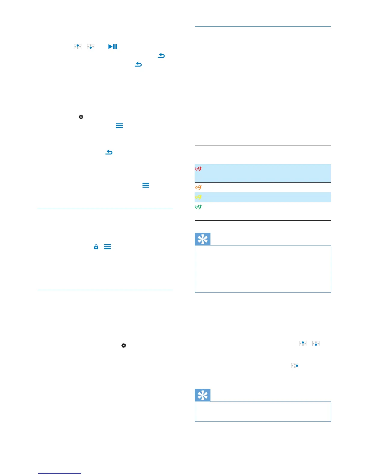 2 On the music play screen, press / .