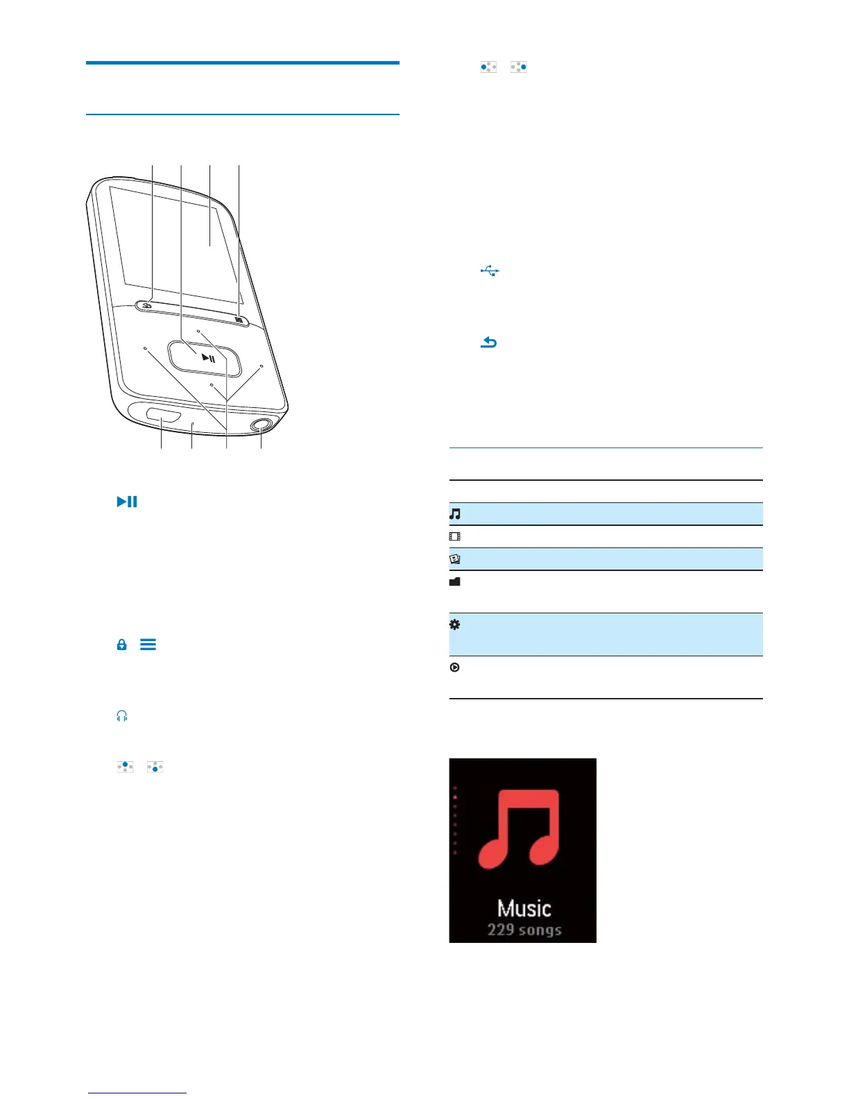 Press and hold: Switch the player on