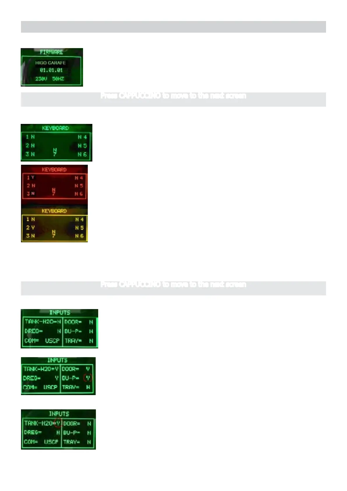 Press CAPPUCCINO to move to the next screen