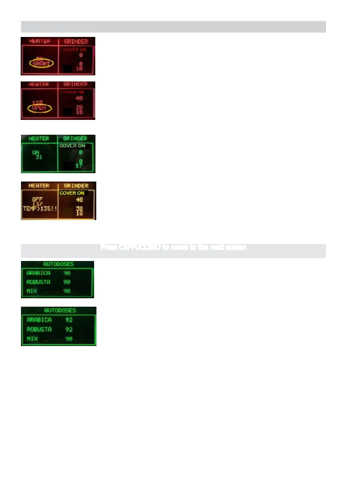 Press CAPPUCCINO to move to the next screen