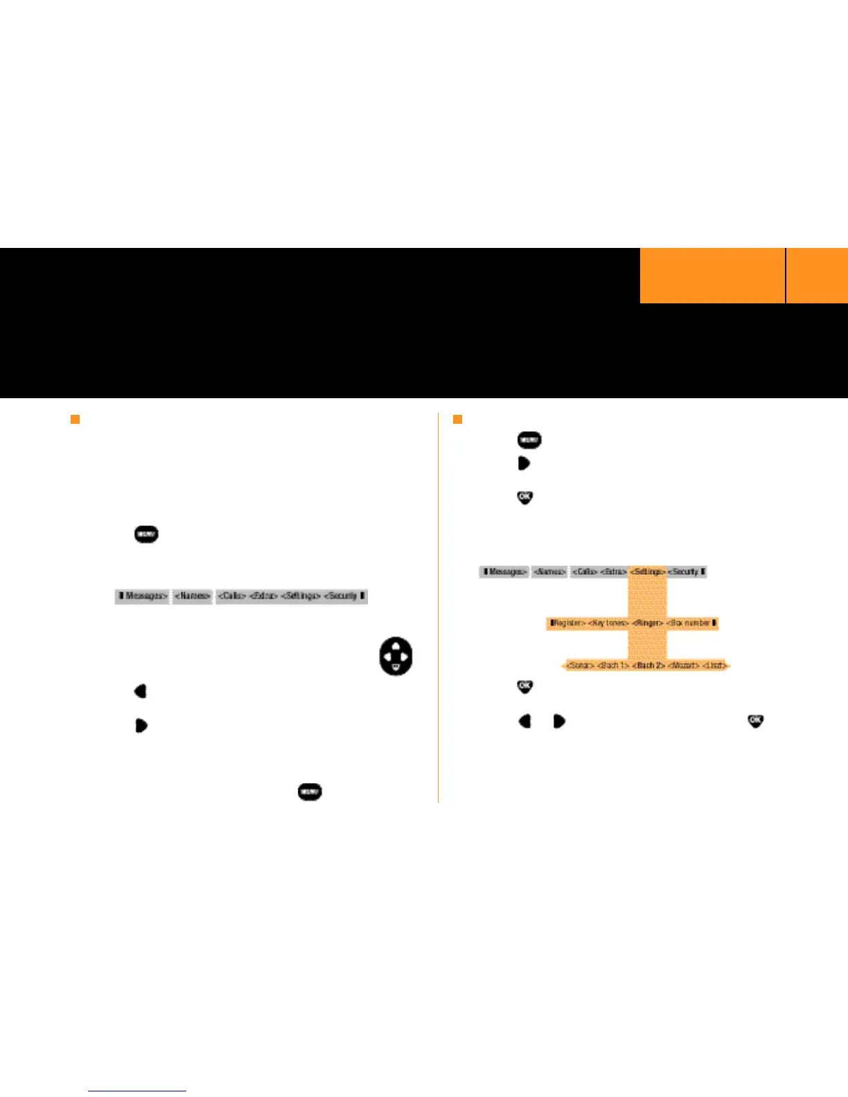 menu level to <Ringer> (<Ringer> and <Key To n e s >