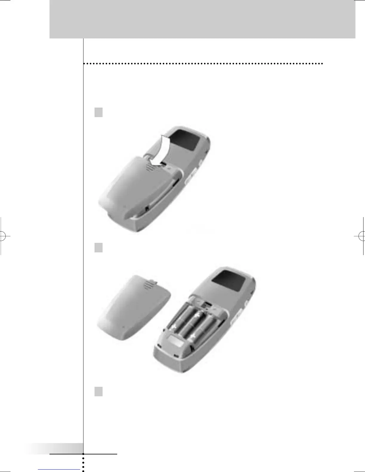 1 Remove the battery cover by pressing and sliding.