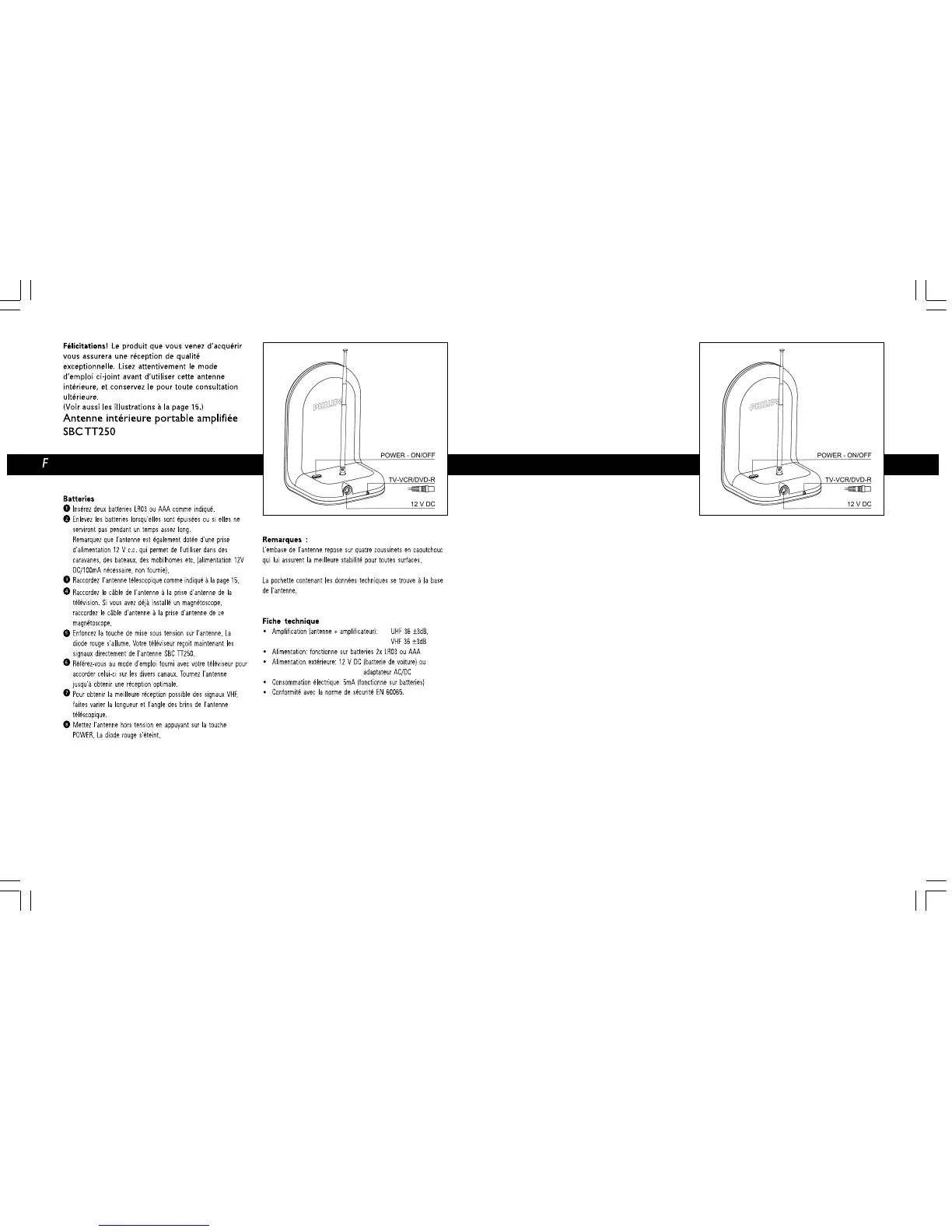 • Forsterkning (antenne + forsterker): UHF 36 ±3dB, VHF 36 ±3dB