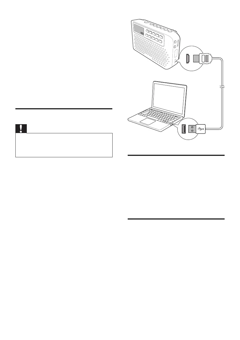 • Risk of damage to the speaker. Charge through the USB