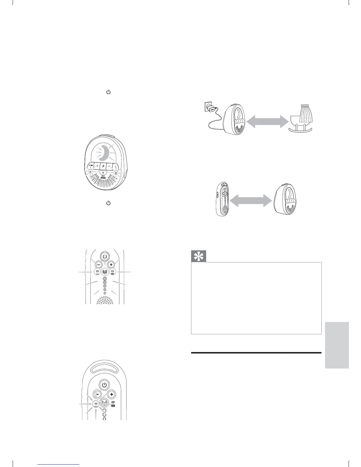 1 Pritisnite i zadržite na jedinici za bebu