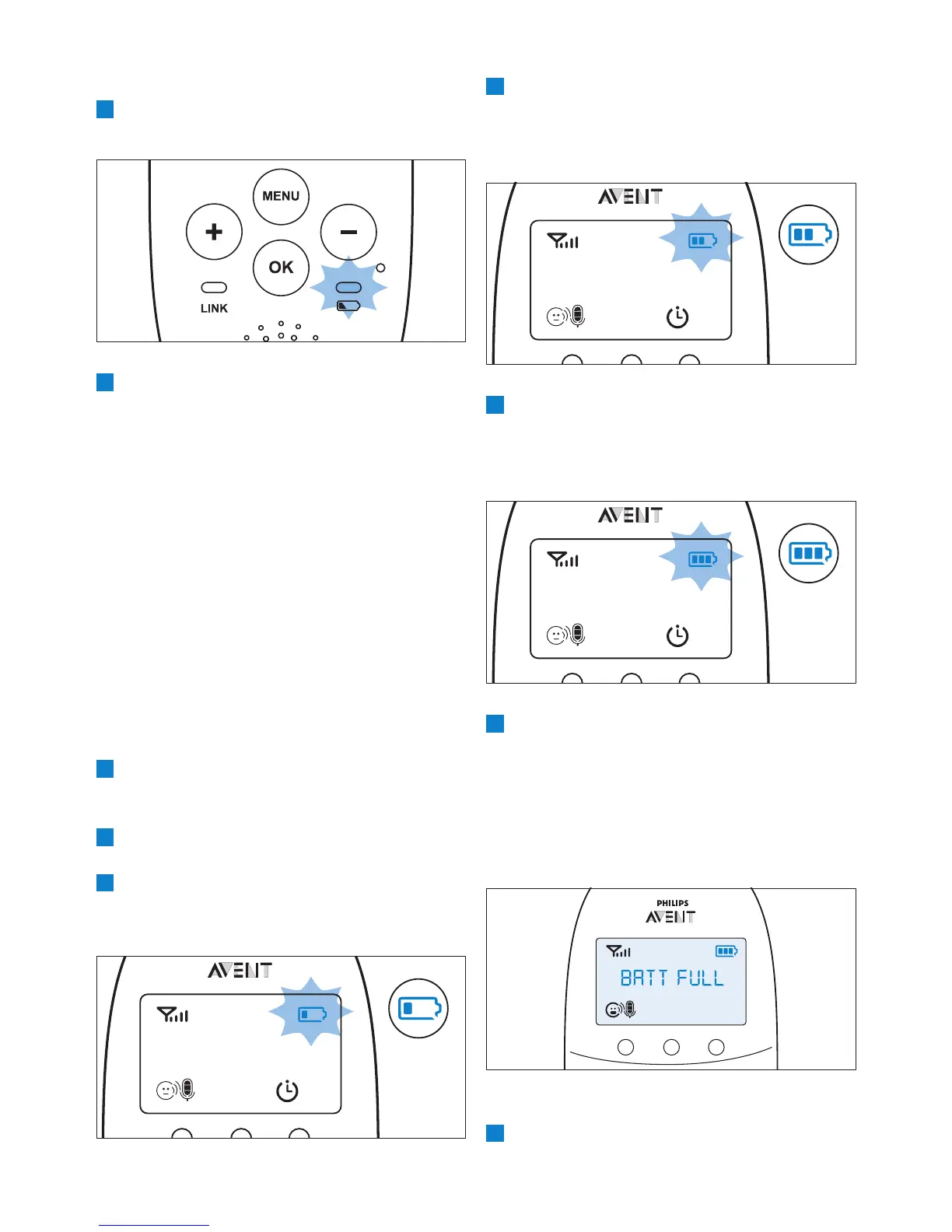 the message ‘BATT FULL’ appears on the