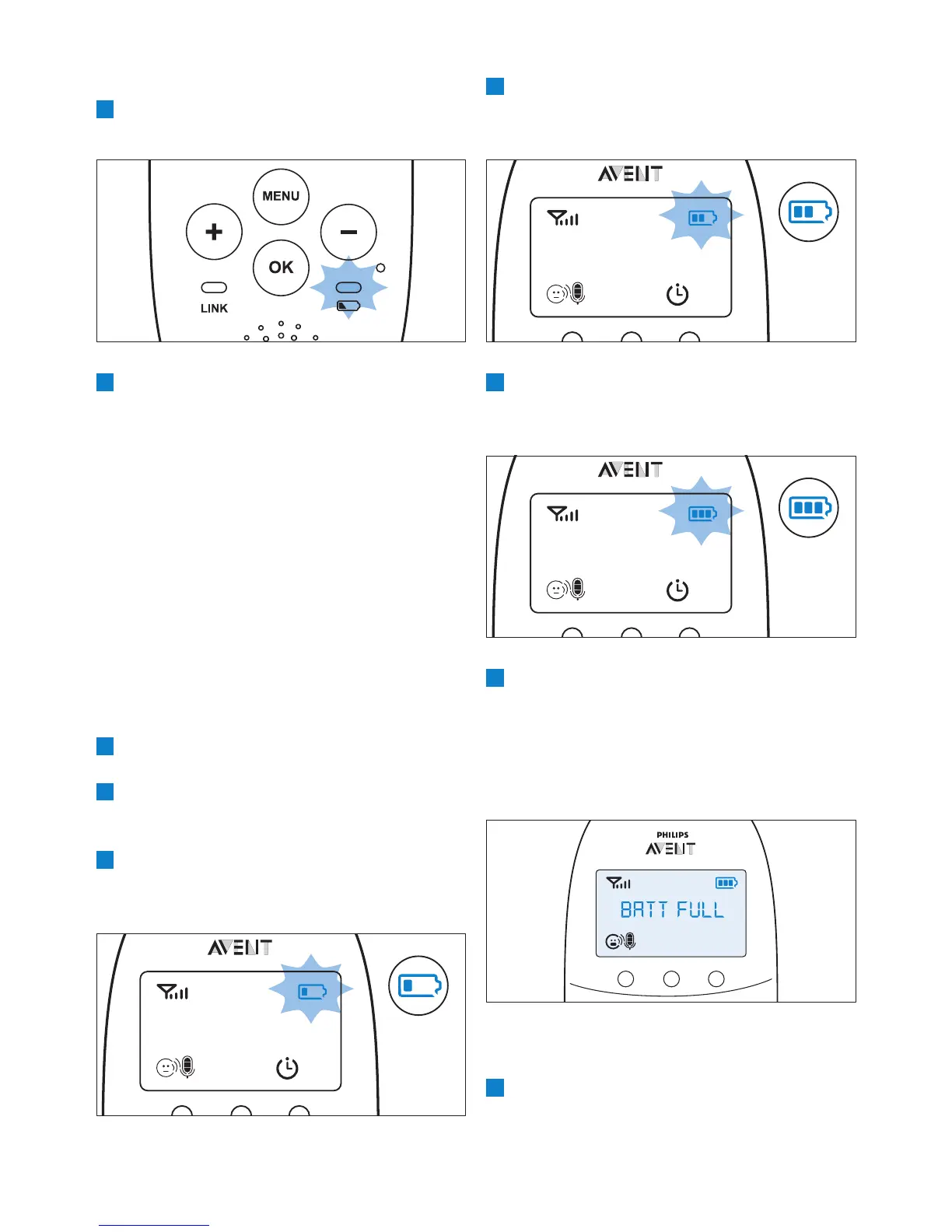 pranešimas „BATT FULL“ (baterija
