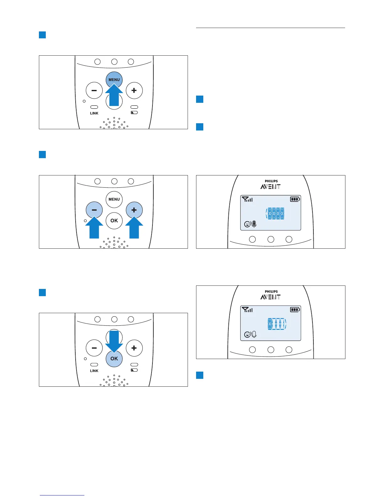 1 Naudodamiesi + ir - mygtukais meniu