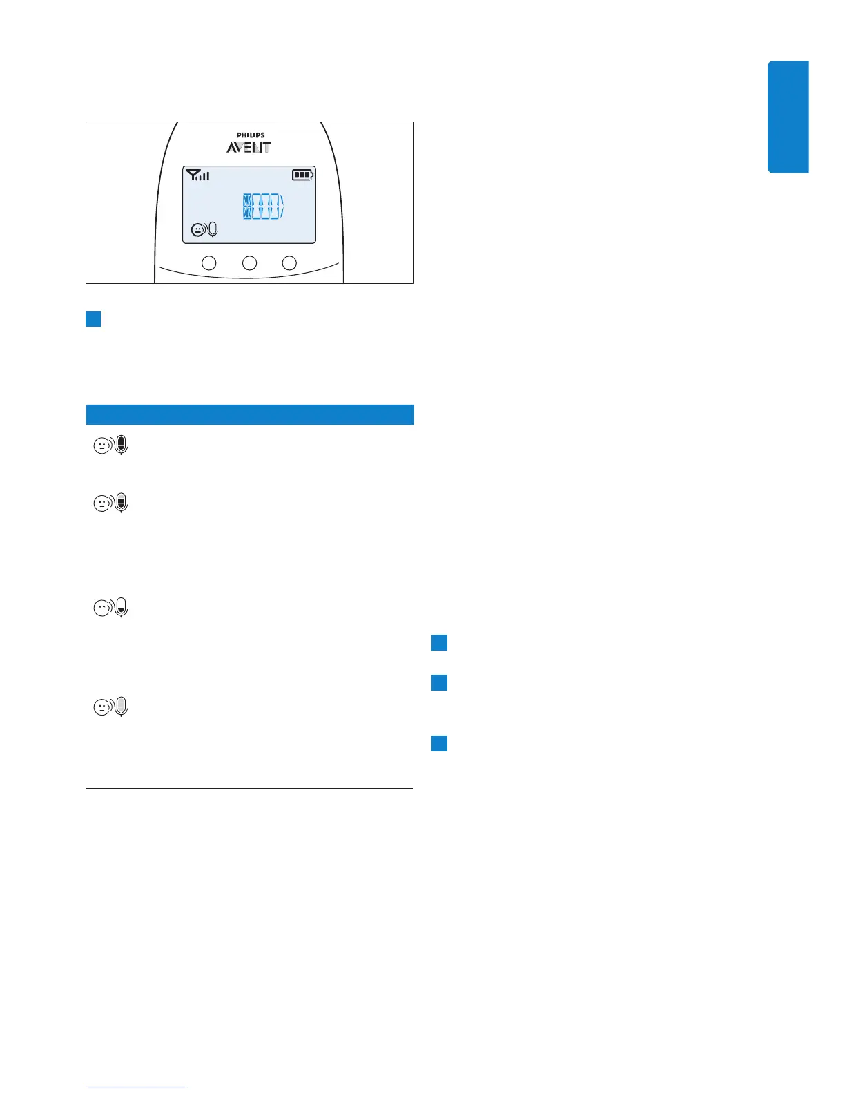 līmeņa indikators iedegas, kad mazuļa ierīce