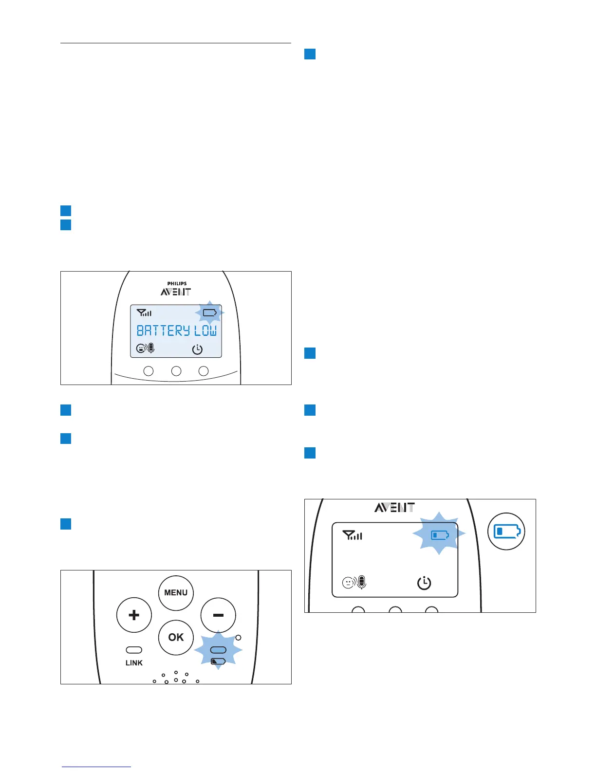 na 2 sekundy komunikat „BATTERY LOW” (Niski