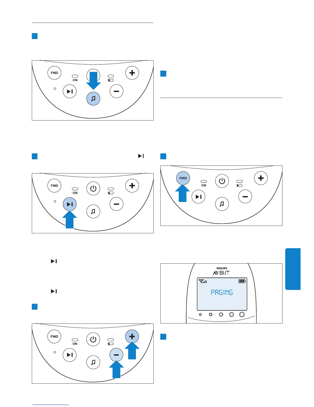 Na otroški enoti pritisnite gumb FIND (Iskanje).