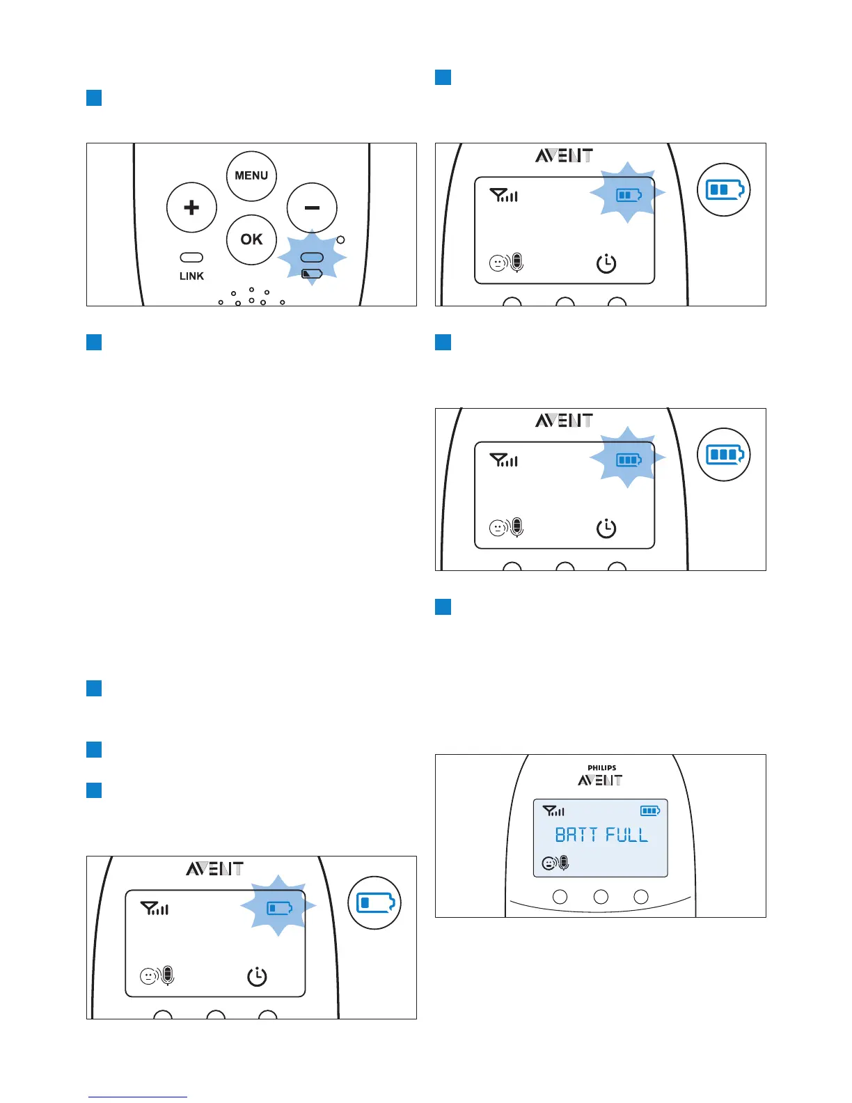 njem se prikaže sporočilo “BATT FULL”