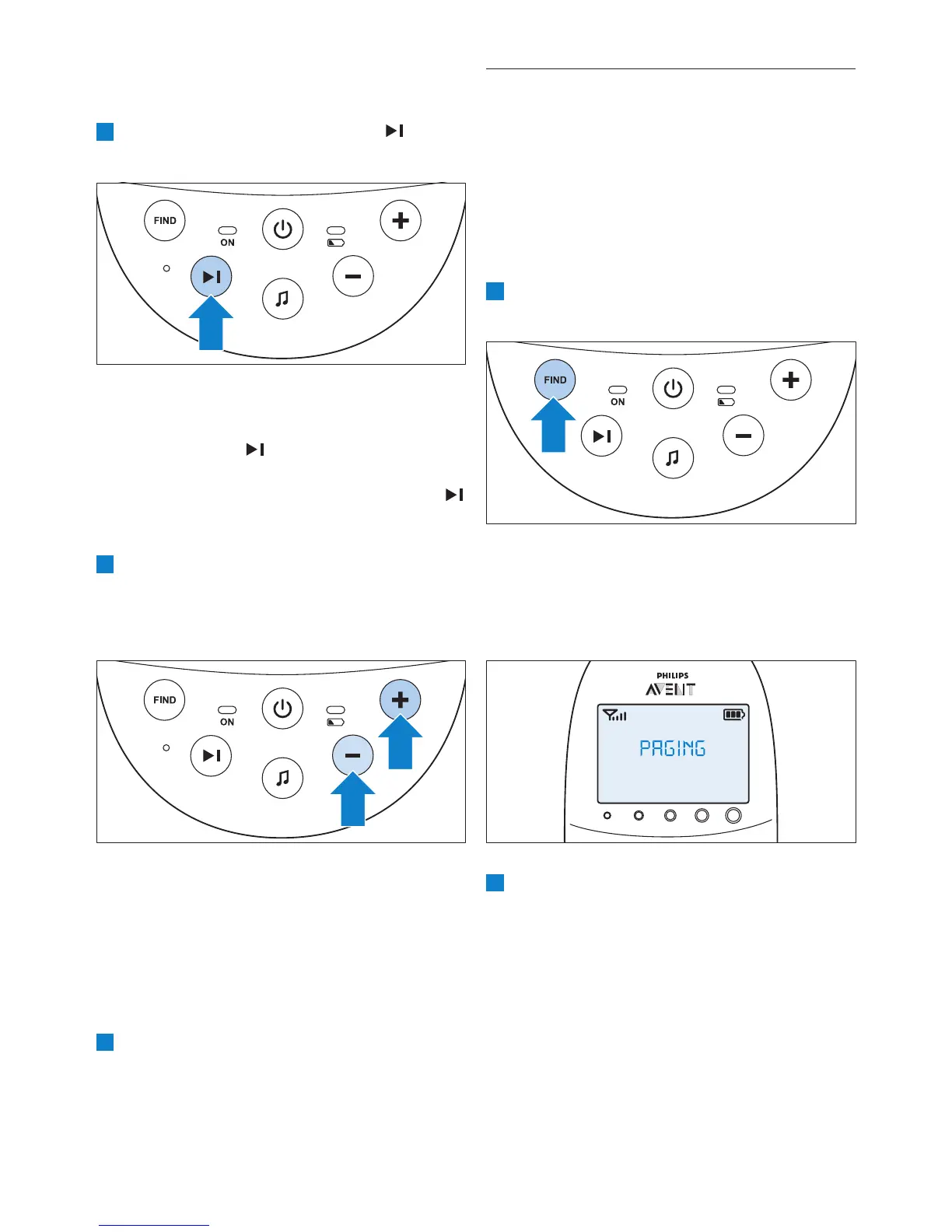 1 Stiskněte tlačítko FIND (Vyhledat) na dětské
