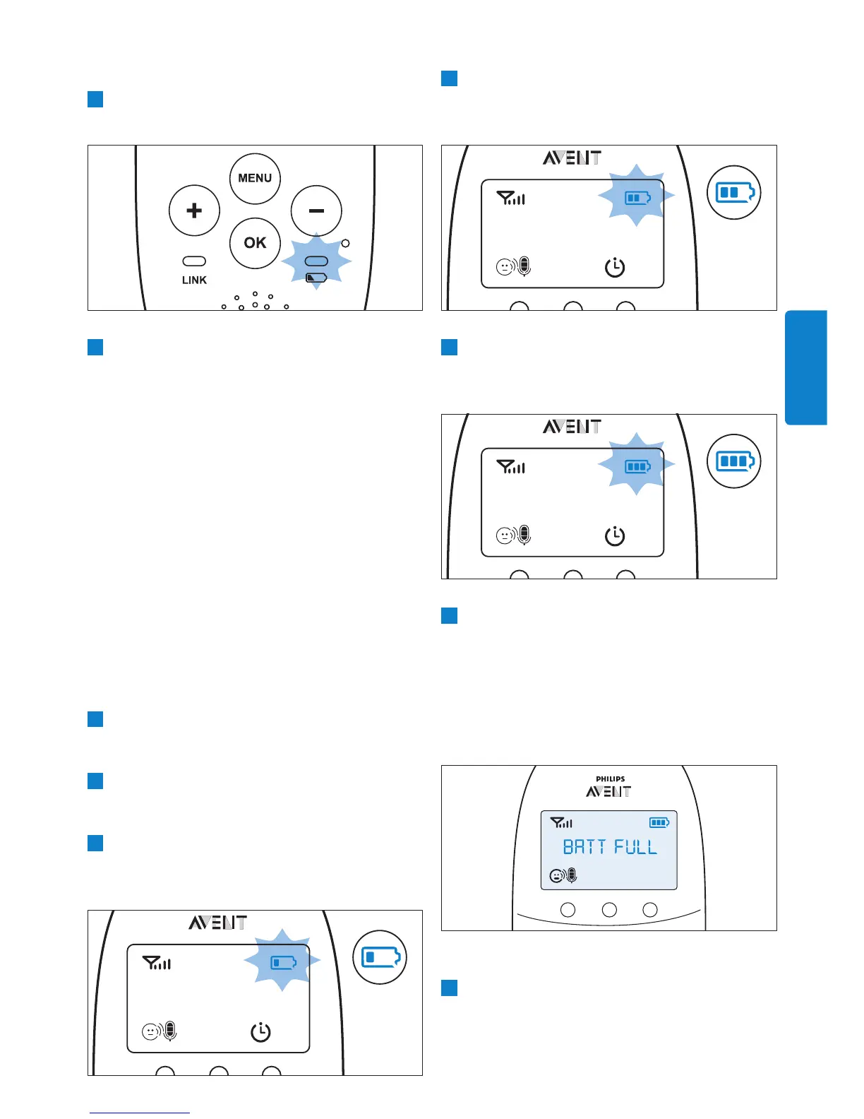 blikat, když se nabíjecí baterie nabijí na více