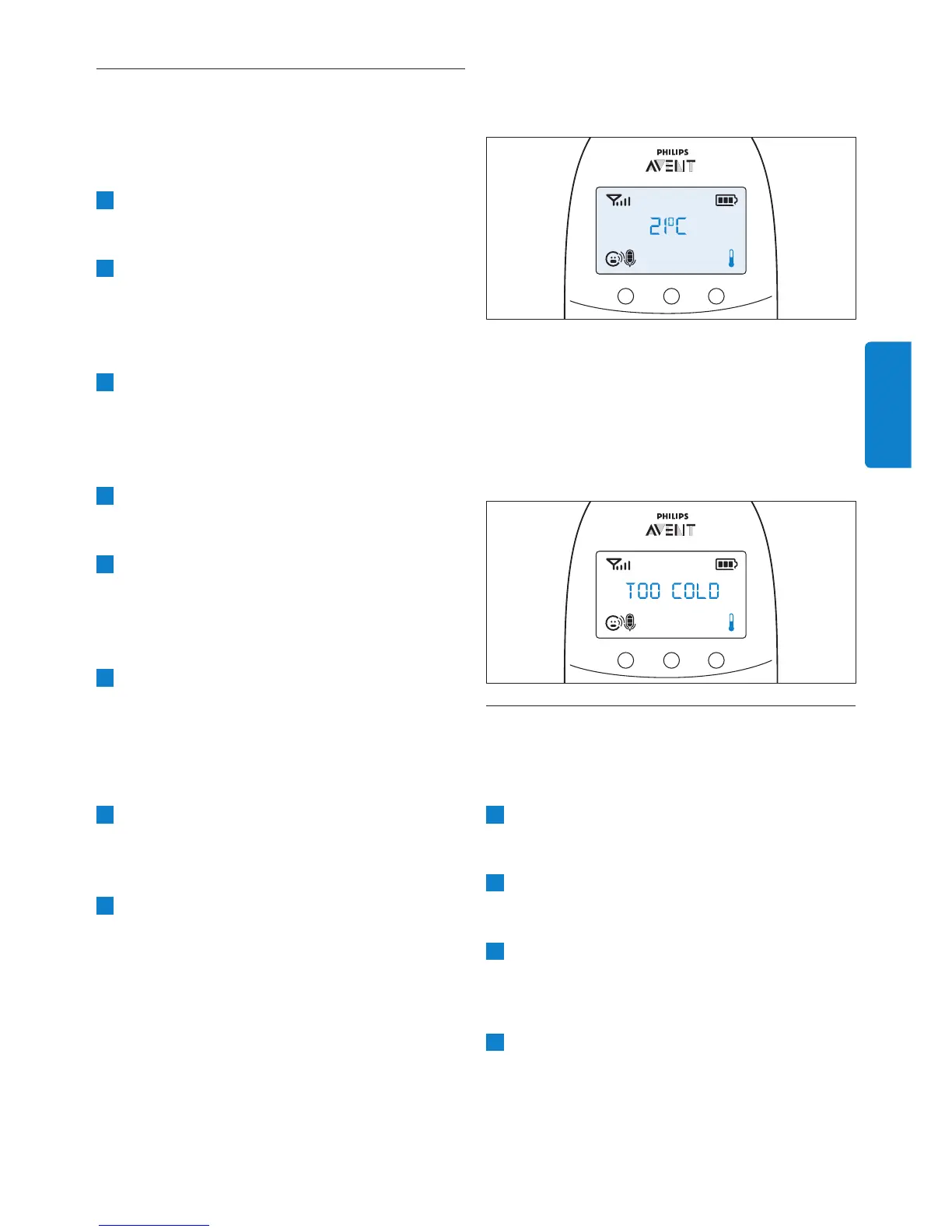 (Příliš teplo) nebo „TOO COLD“ (Příliš