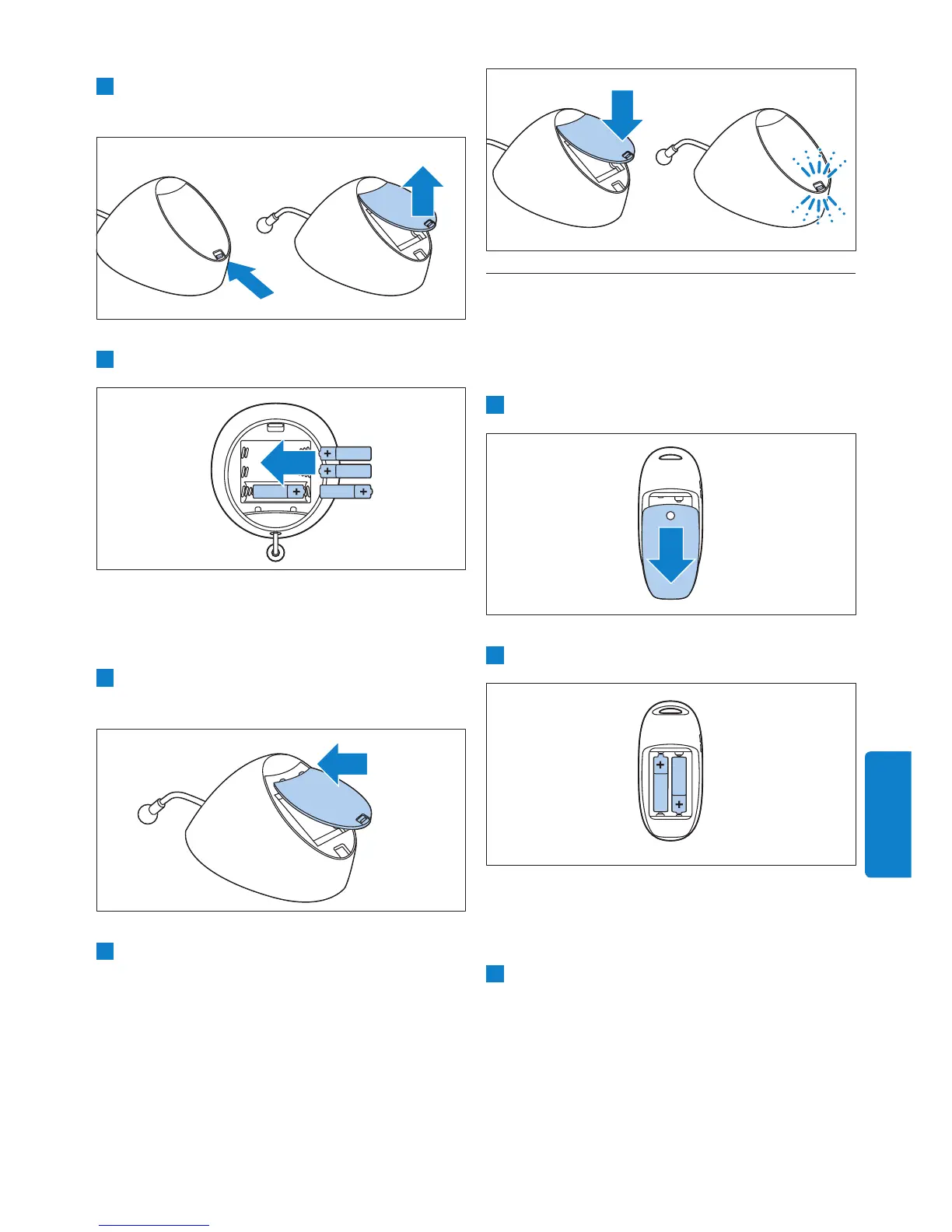 2 Aseta lokeroon neljä paristoa.