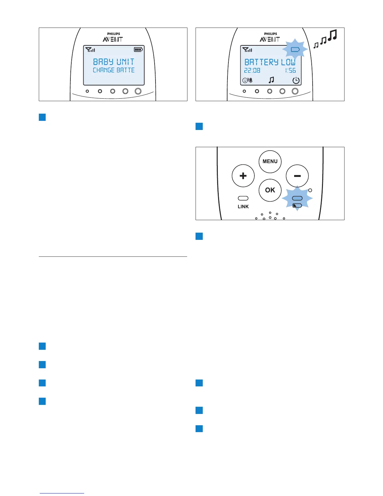 2 Viesti BATTERY LOW (Lataus vähissä) tulee