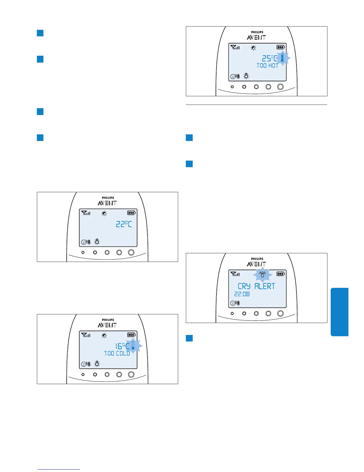 näytössä näkyy Cry alert (itkuhälytys) neljän