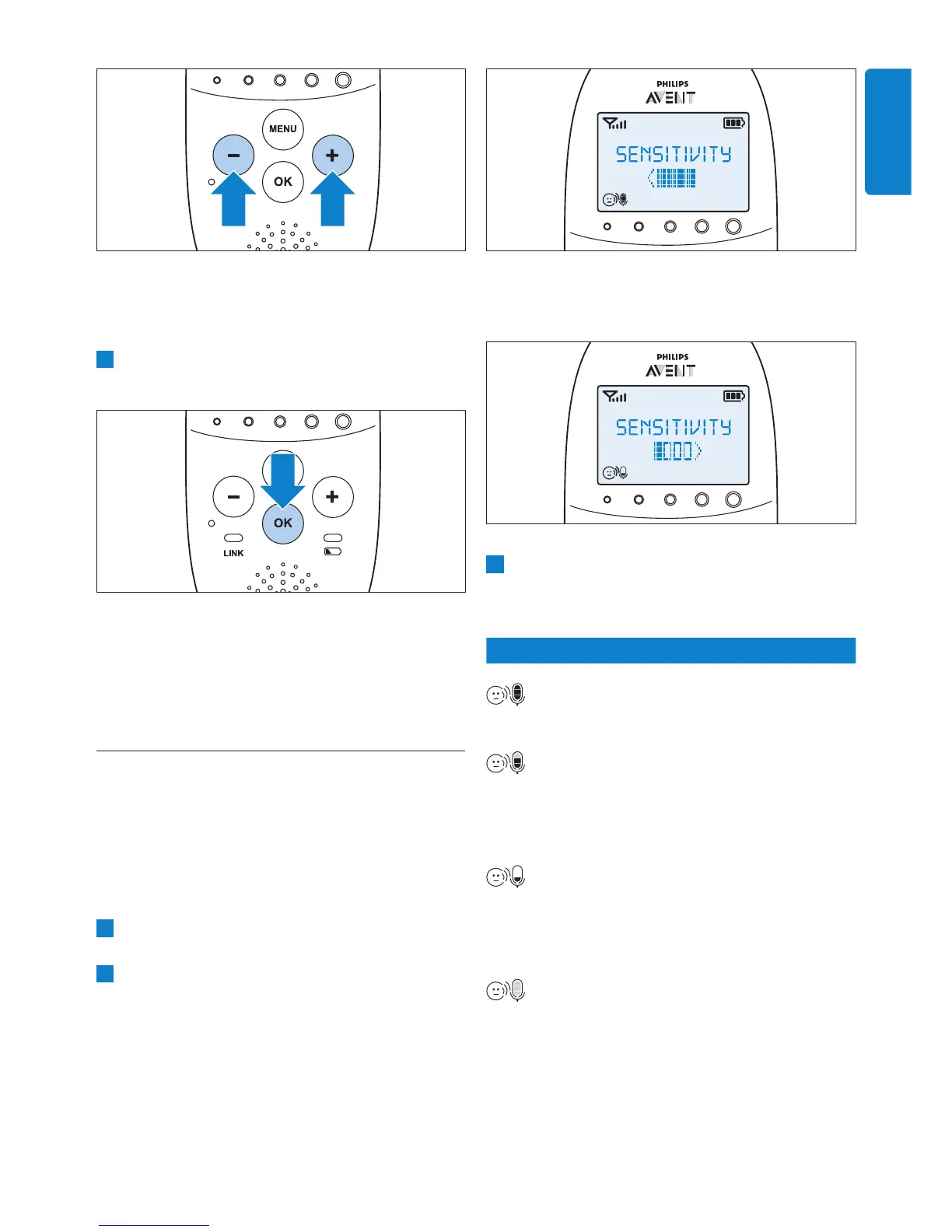 1 Select ‘Sensitivity’ in the menu with the + and