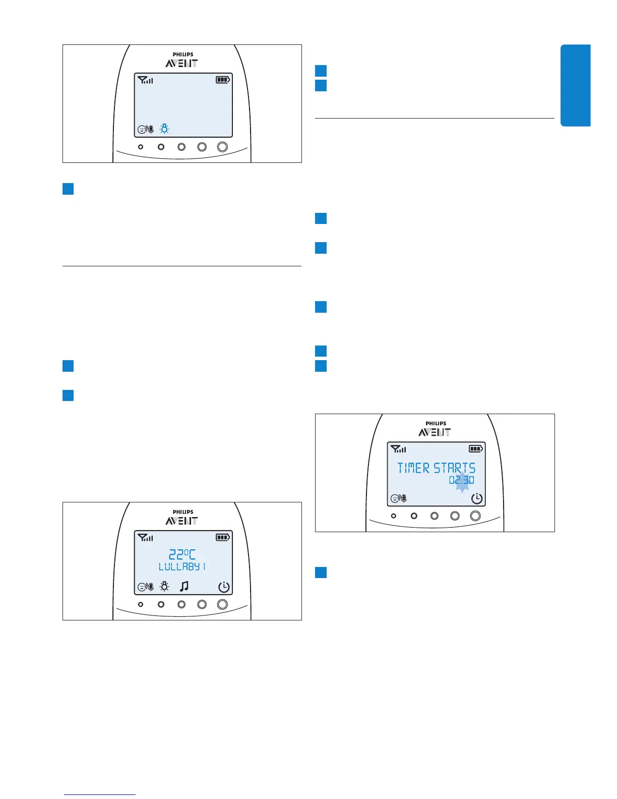 • The display shows the lullaby symbol