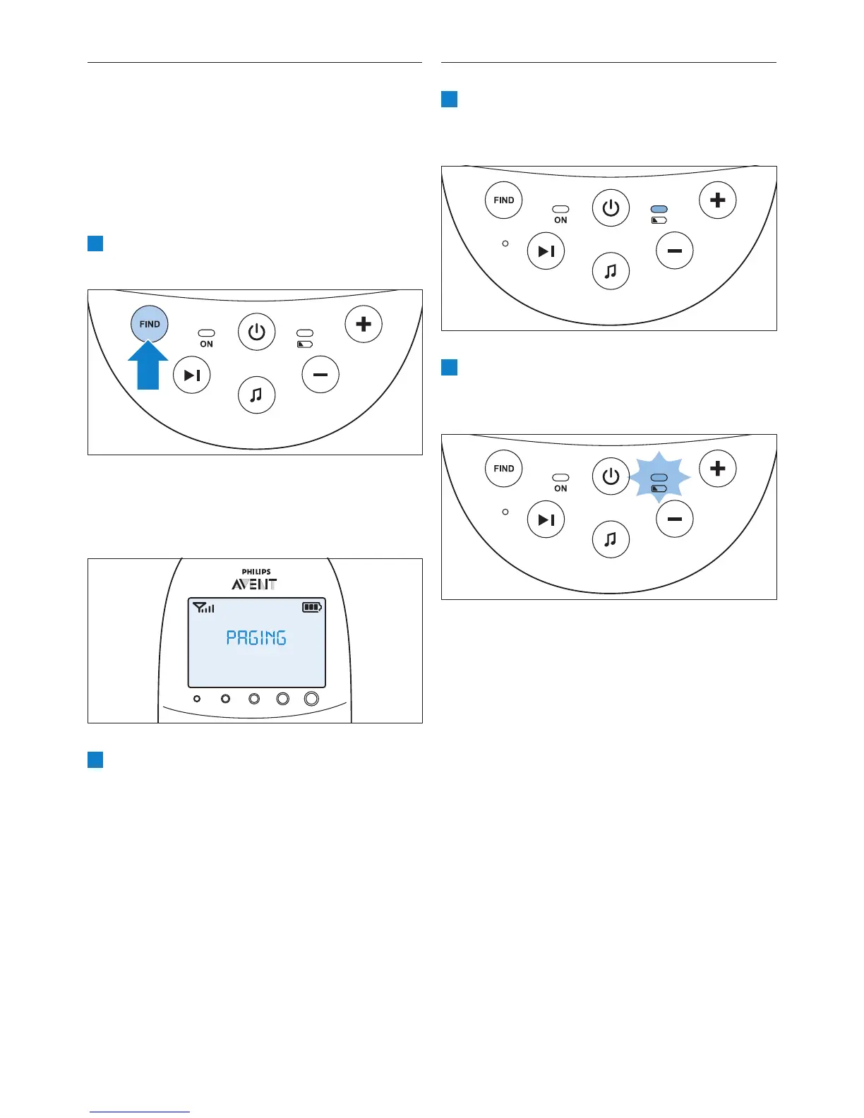 Als de ouderunit zoek is, kunt u de FIND-knop