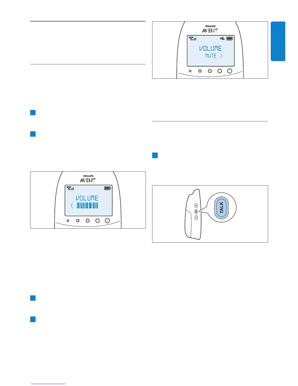• De ouderunit piept bij elke volumewijziging.