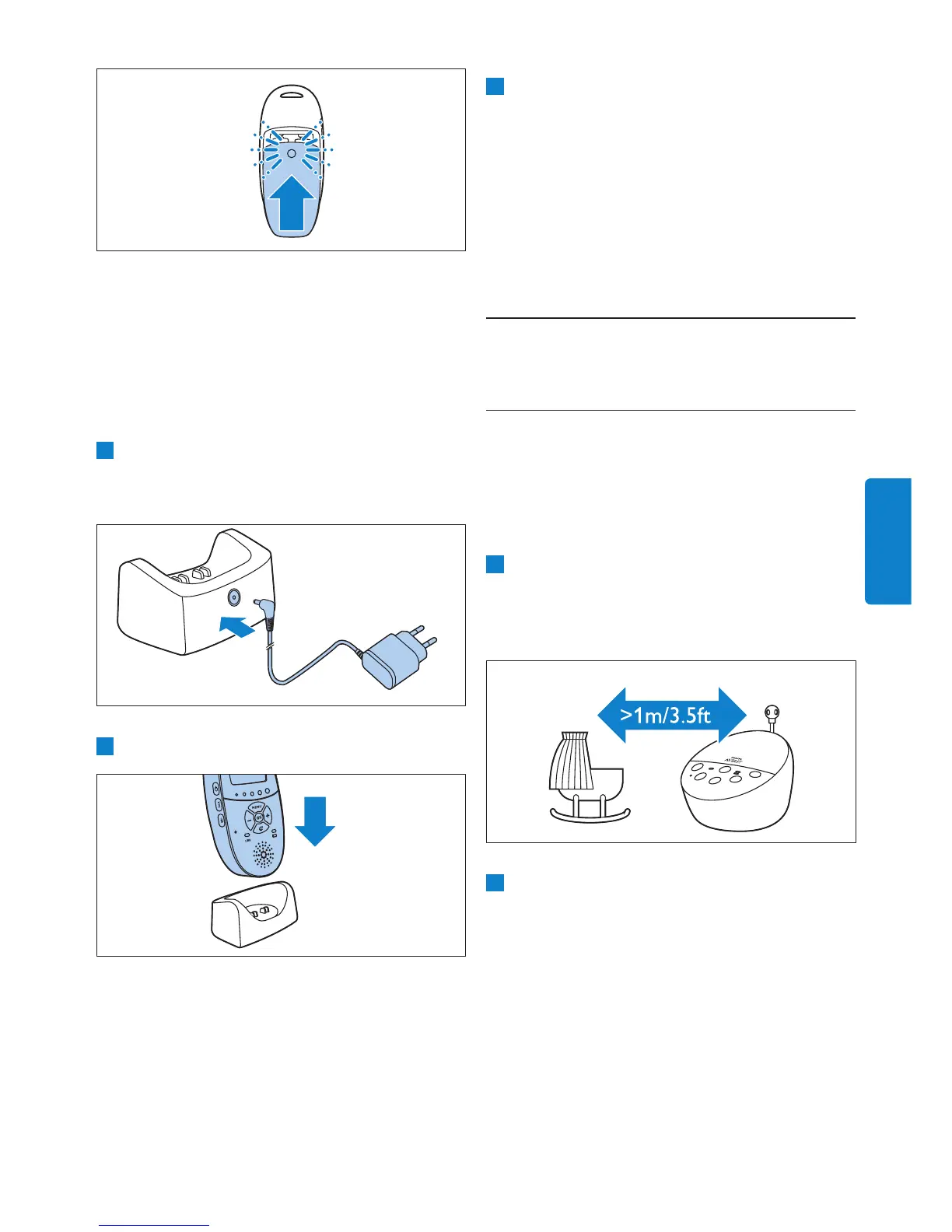 2 Anslut föräldraenheten till laddaren.