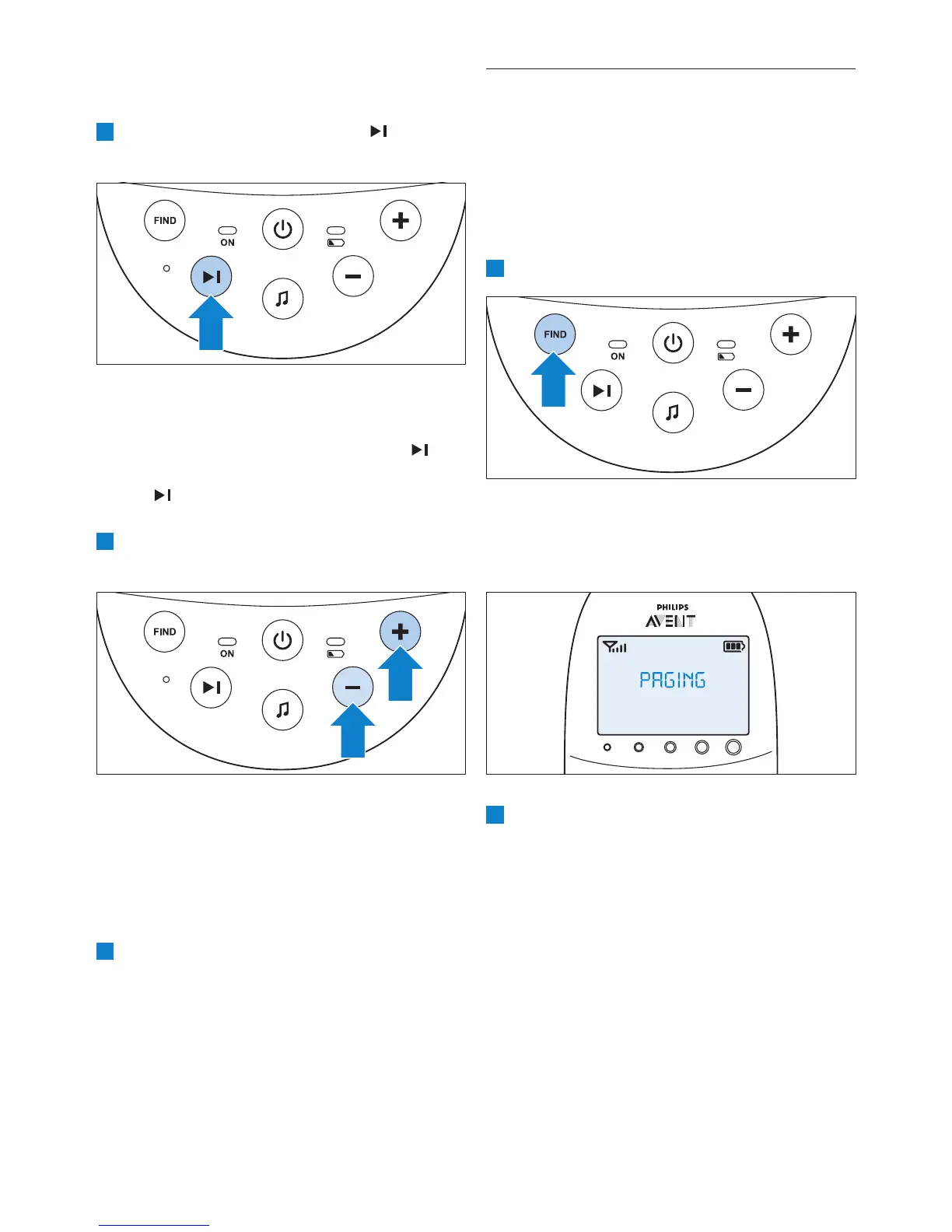 1 Tryck på knappen FIND (sök) på babyenheten.