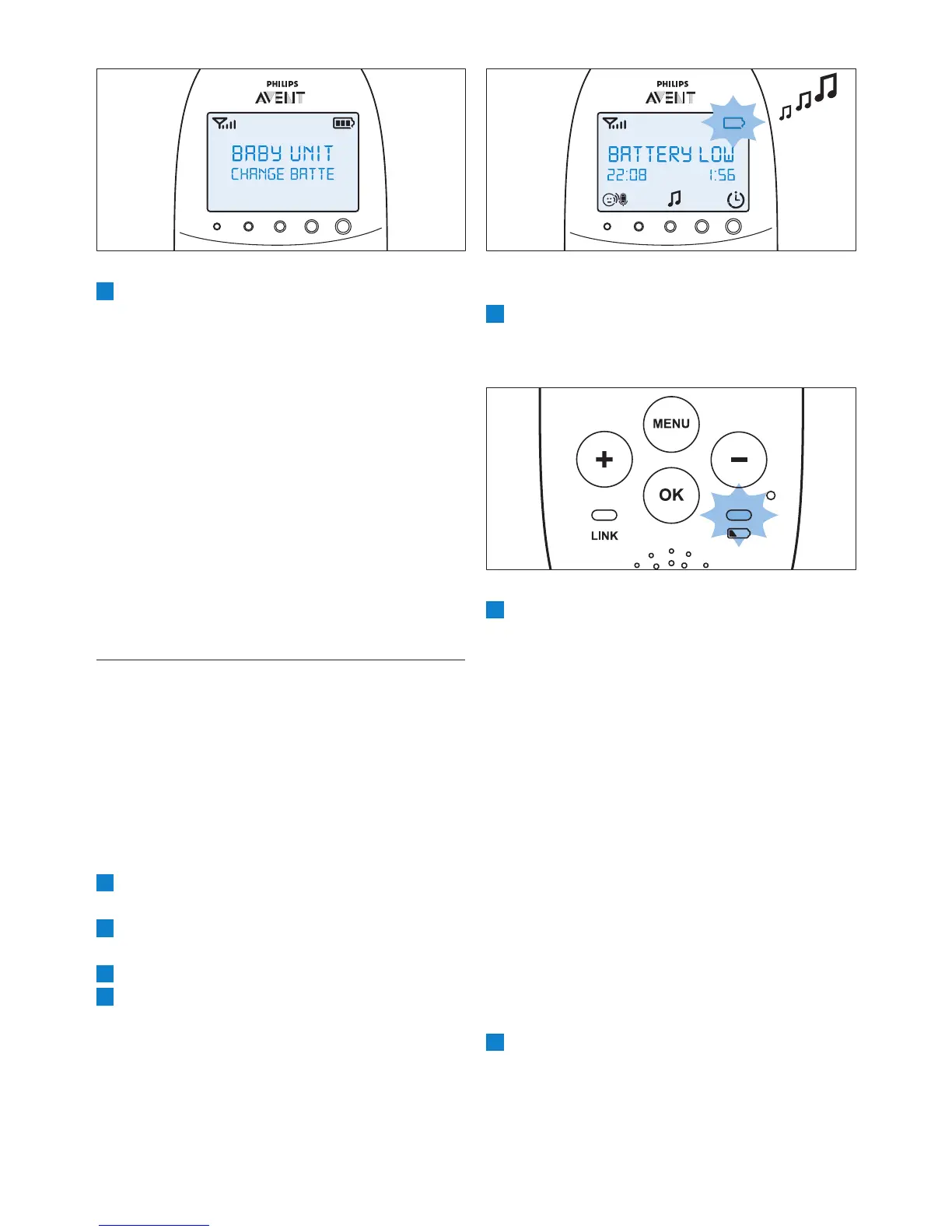 tændes displayet. Meddelelsen “BATTERY LOW”