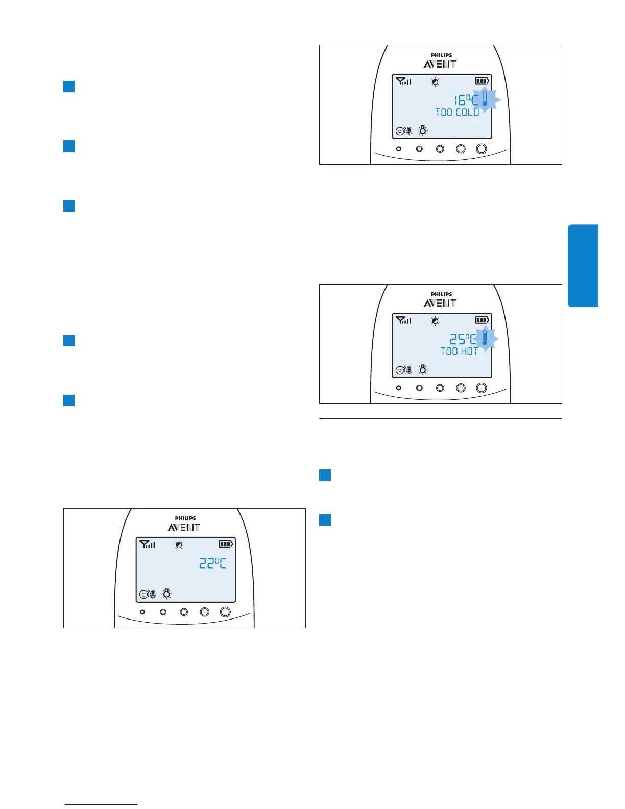 Nachricht “TOO COLD” (Zu kalt) wird auf
