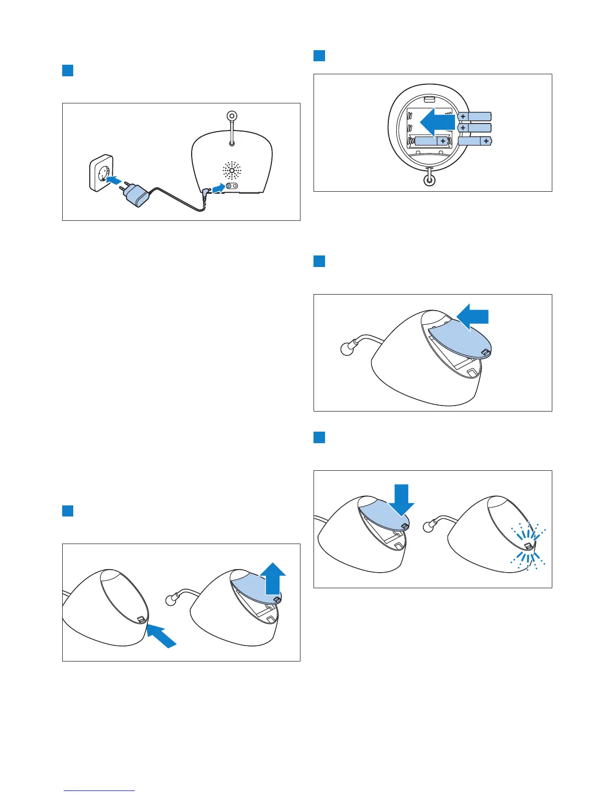 2 Aseta lokeroon neljä paristoa.