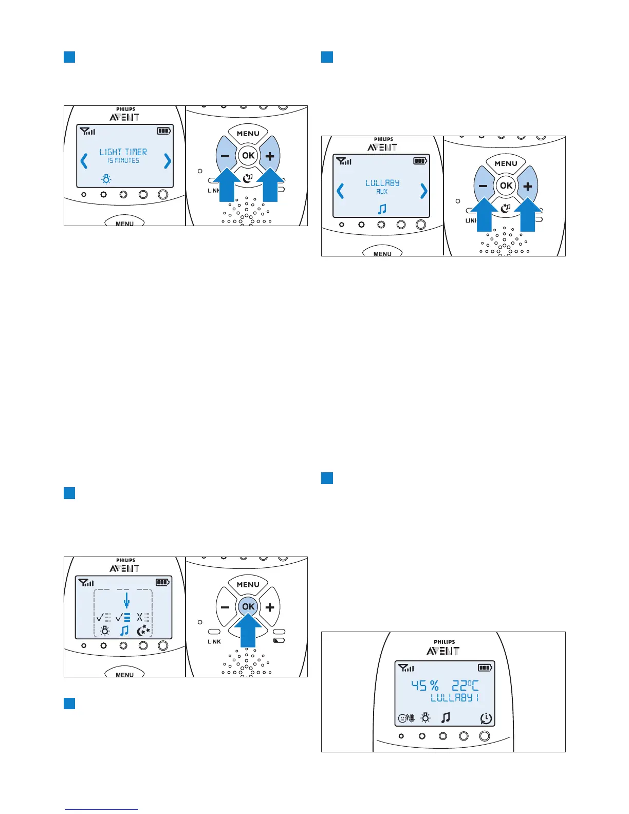 (-)-painikkeilla. Kytke kehtolaulun soitto päälle