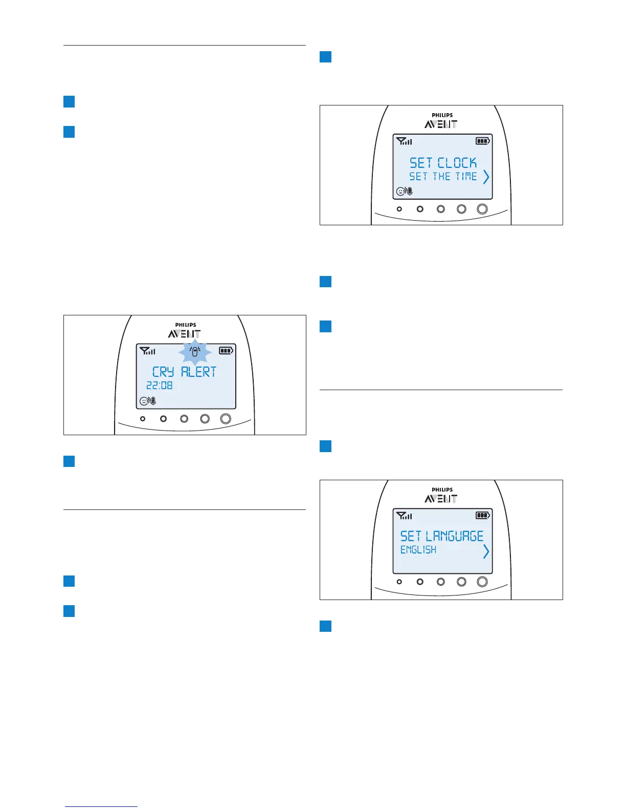 1 Select ‘Cry alert’ in the menu with the + and -