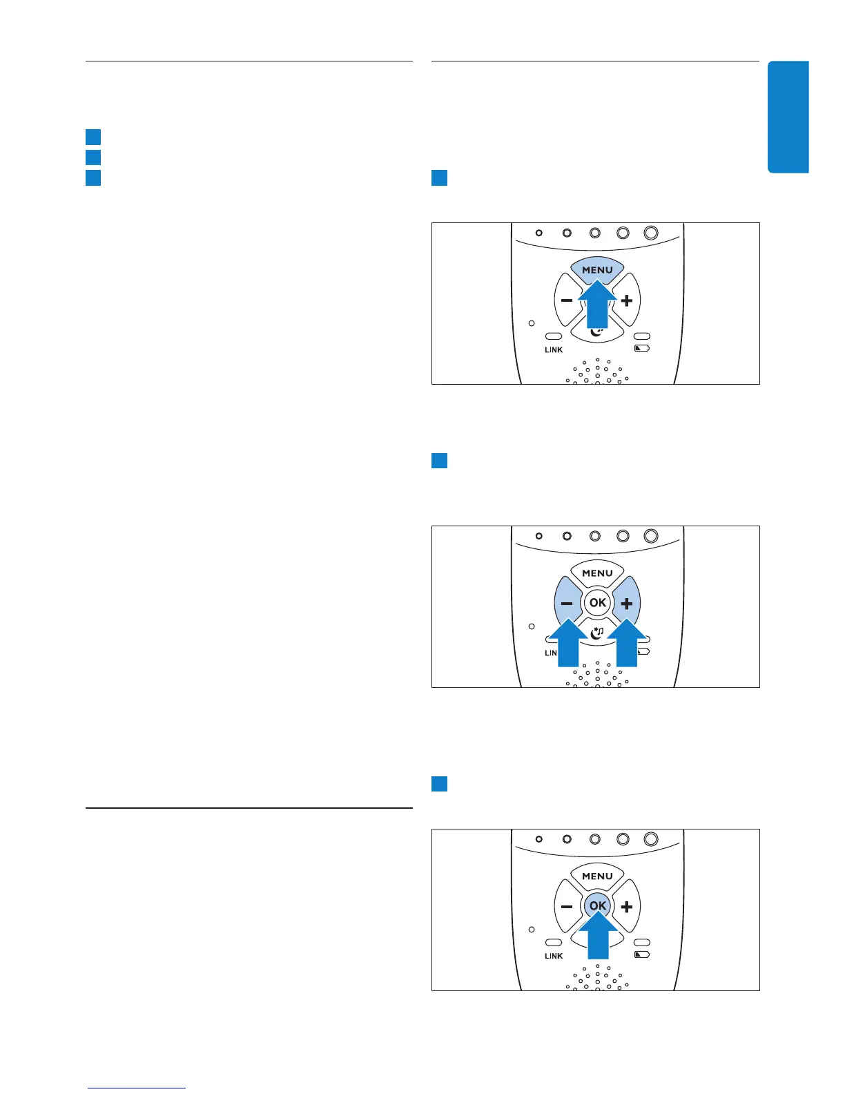3 Schakel de unit opnieuw in terwijl u de - knop