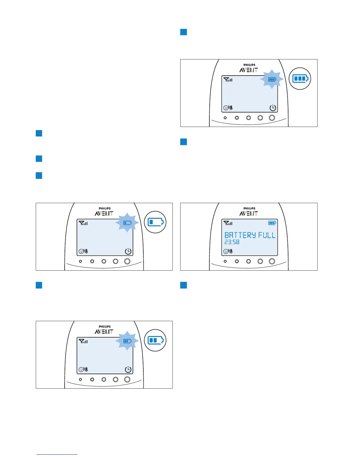 meldingen BATTERY FULL (Fullt batteri)