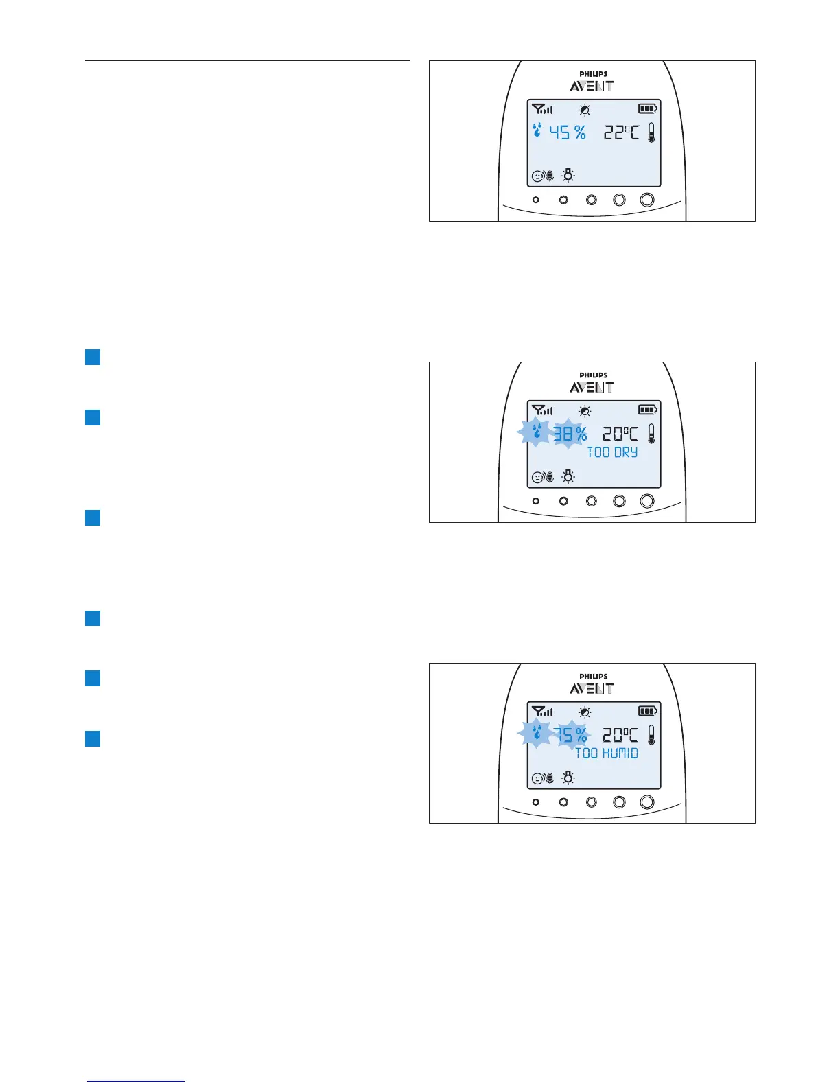 • Hvis luftfuktigheten ligger under det angitte
