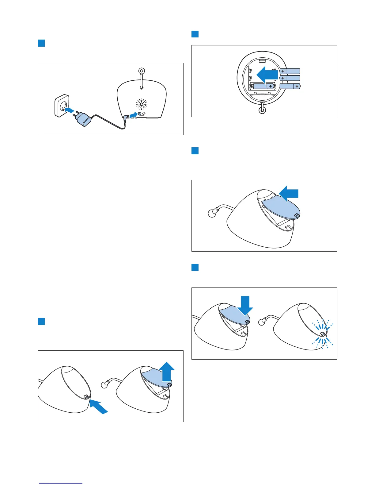 Vid strömavbrott kan babyenheten köras på fyra