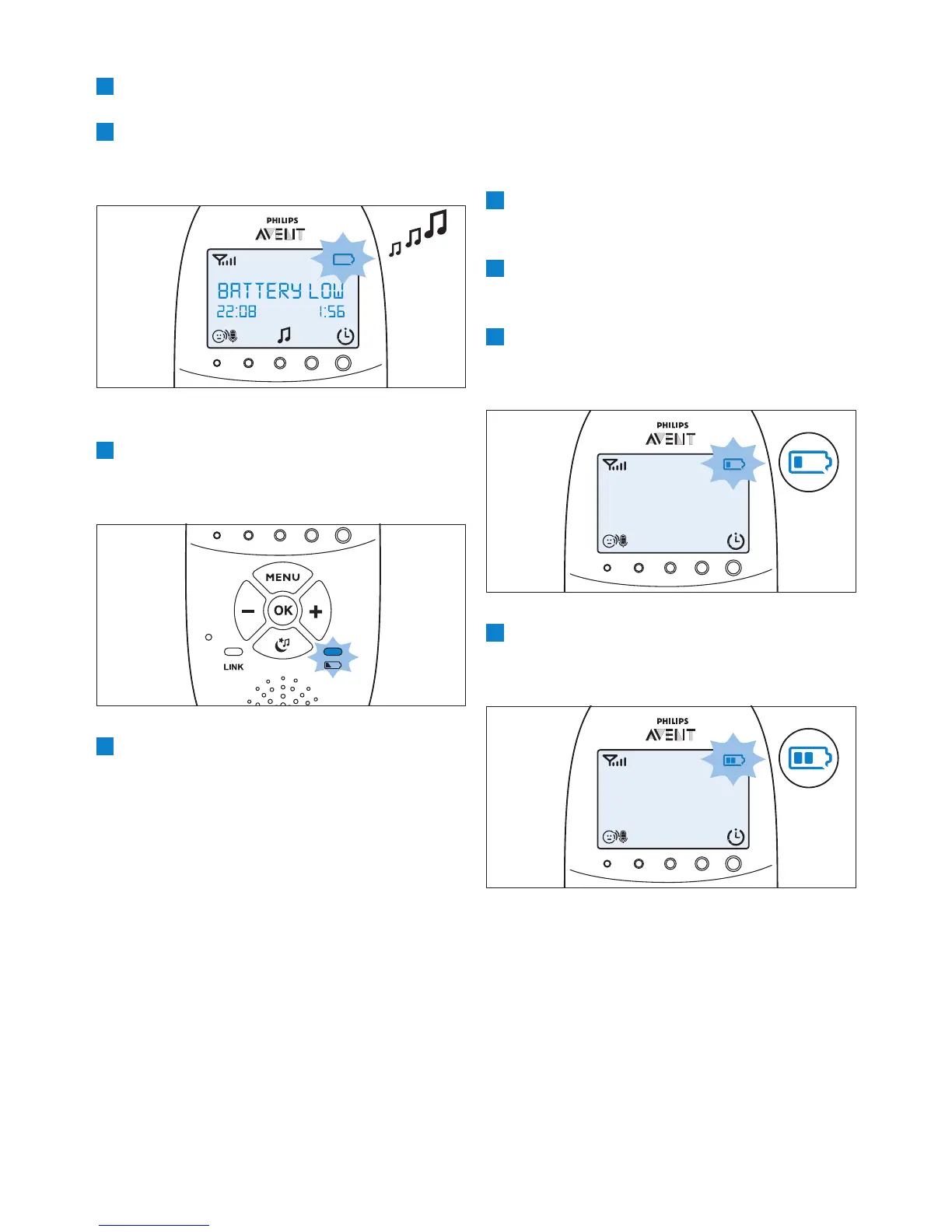 teckenfönstret på. Meddelandet ”BATTERY LOW”