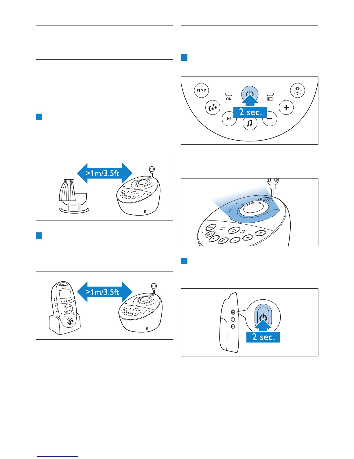 1 Tryk på on/off-knappen 3 på babyenheden,