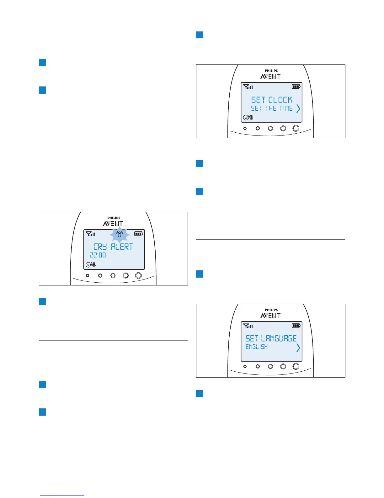 1 Välj ”Cry alert” (barnskrikslarm) på menyn
