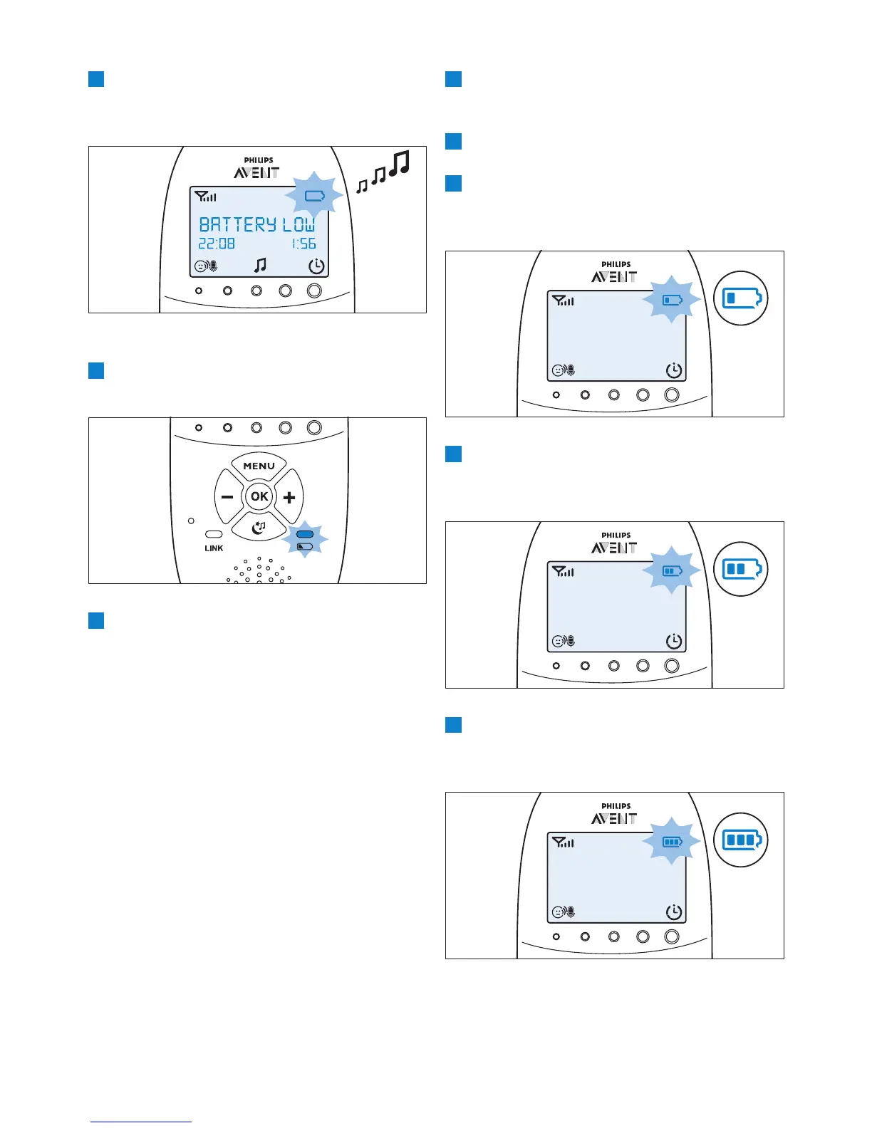 Ebeveyn ünitesi şarj olurken sırayla aşağıdakiler