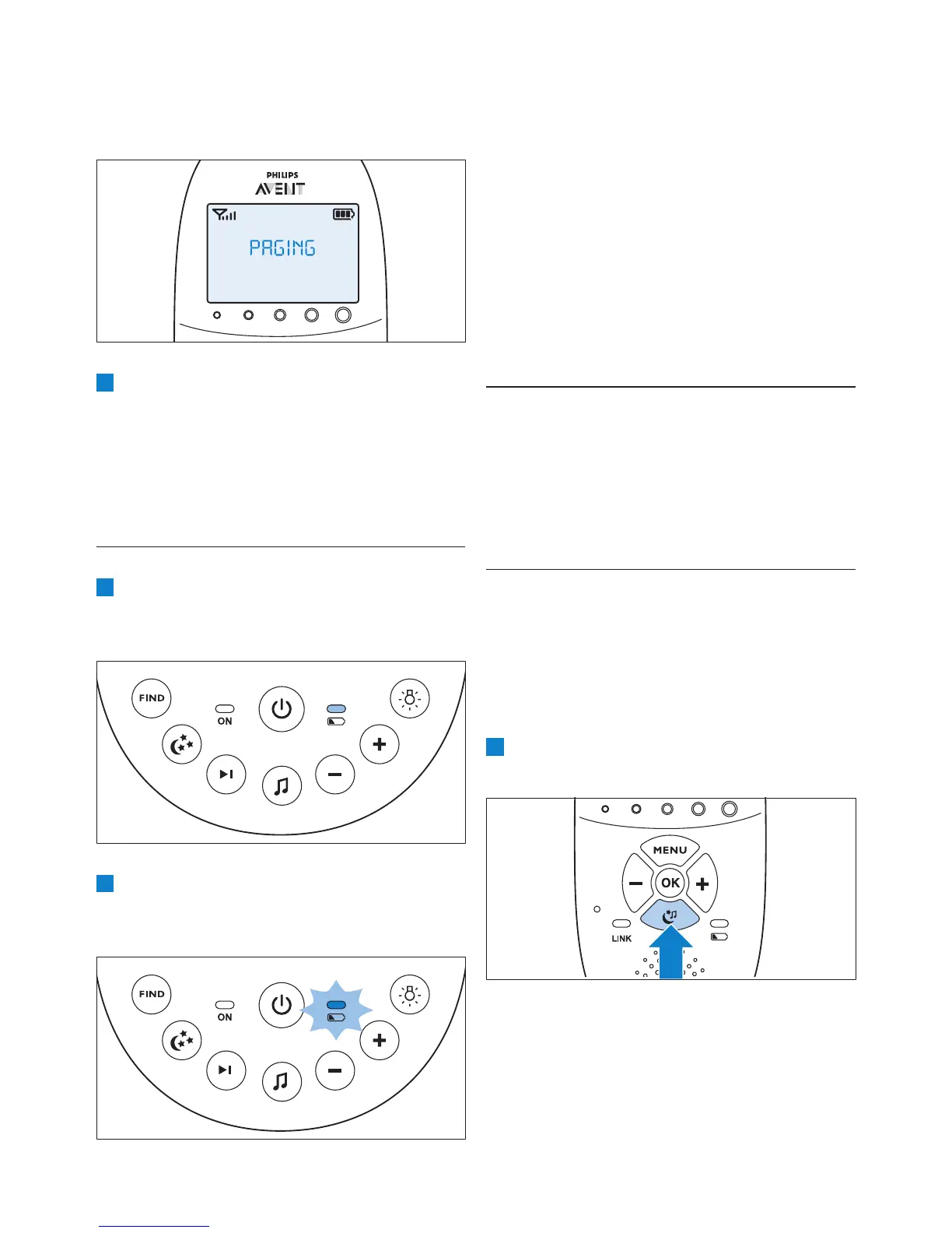 1 Tryk på knappen for beroligende funktioner