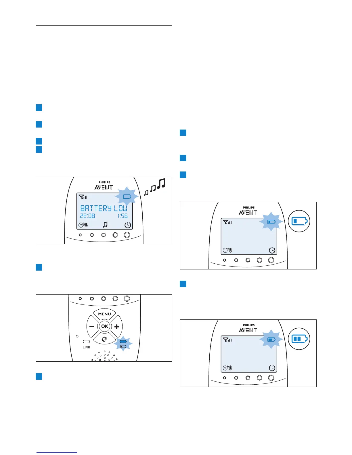 tændes displayet. Meddelelsen “BATTERY LOW”