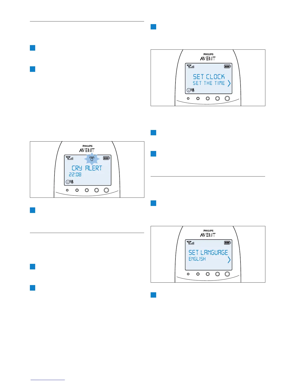 1 Vælg “Cry alert” (Grådalarm) i menuen ved