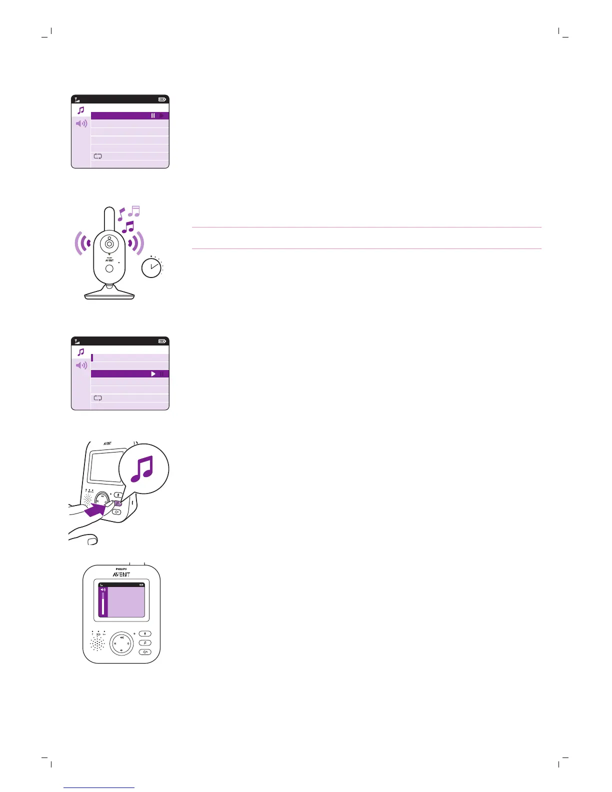 Otroška enota začne predvajati uspavanko in jo neprekinjeno ponavlja