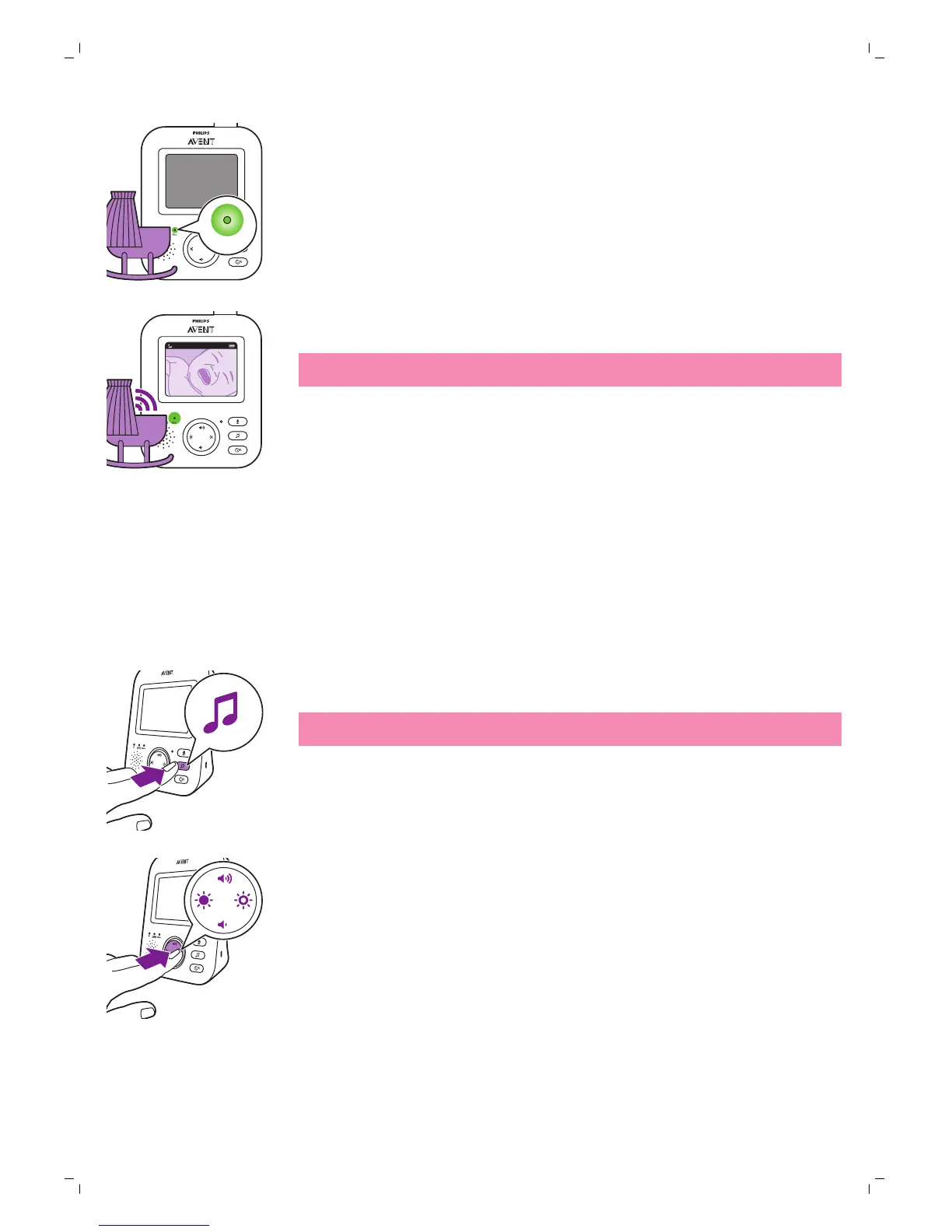 1 Πατήστε το κουμπί νανουρίσματος στη μονάδα γονέα, για να ανοίξετε το μενού για