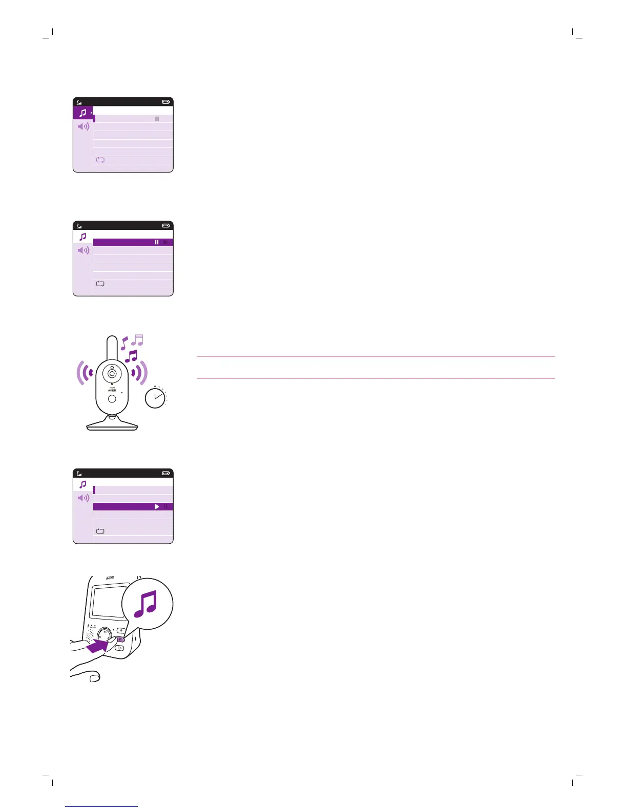 Το νανούρισμα αρχίζει να ακούγεται από τη μονάδα μωρού και επαναλαμβάνεται