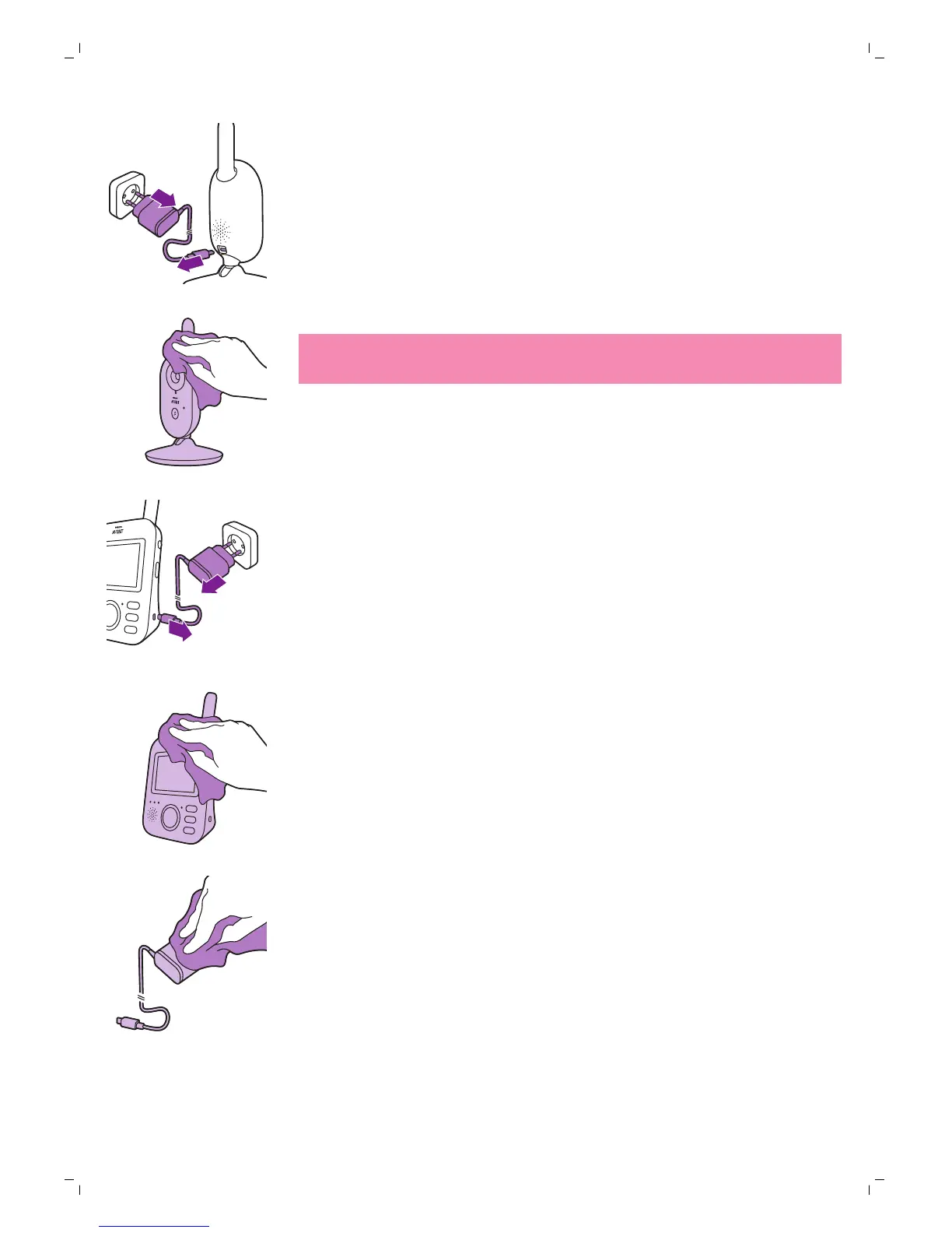 1 Απενεργοποιήστε τη μονάδα μωρού και αποσυνδέστε το βύσμα τροφοδοσίας από