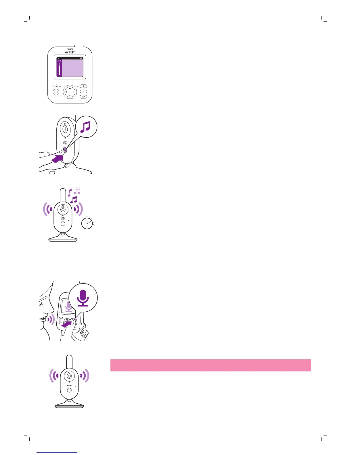Lai aktivizētu šūpuļdziesmas funkciju, izmantojot mazuļa ierīci, nospiediet